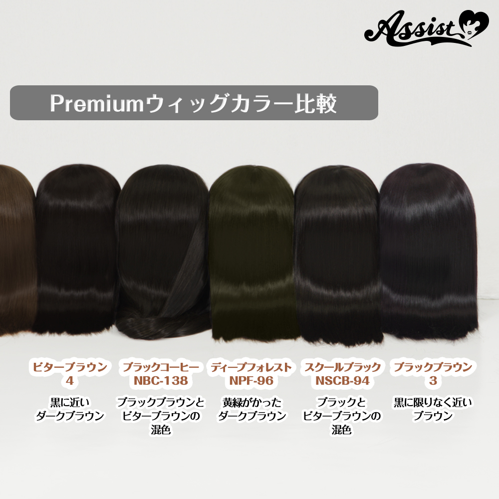自然なミディアムスタイルをお求めの方にオススメです。シャギー入りで扱いやすい毛量です。ブラックブラウンとビターブラウンの混色です。