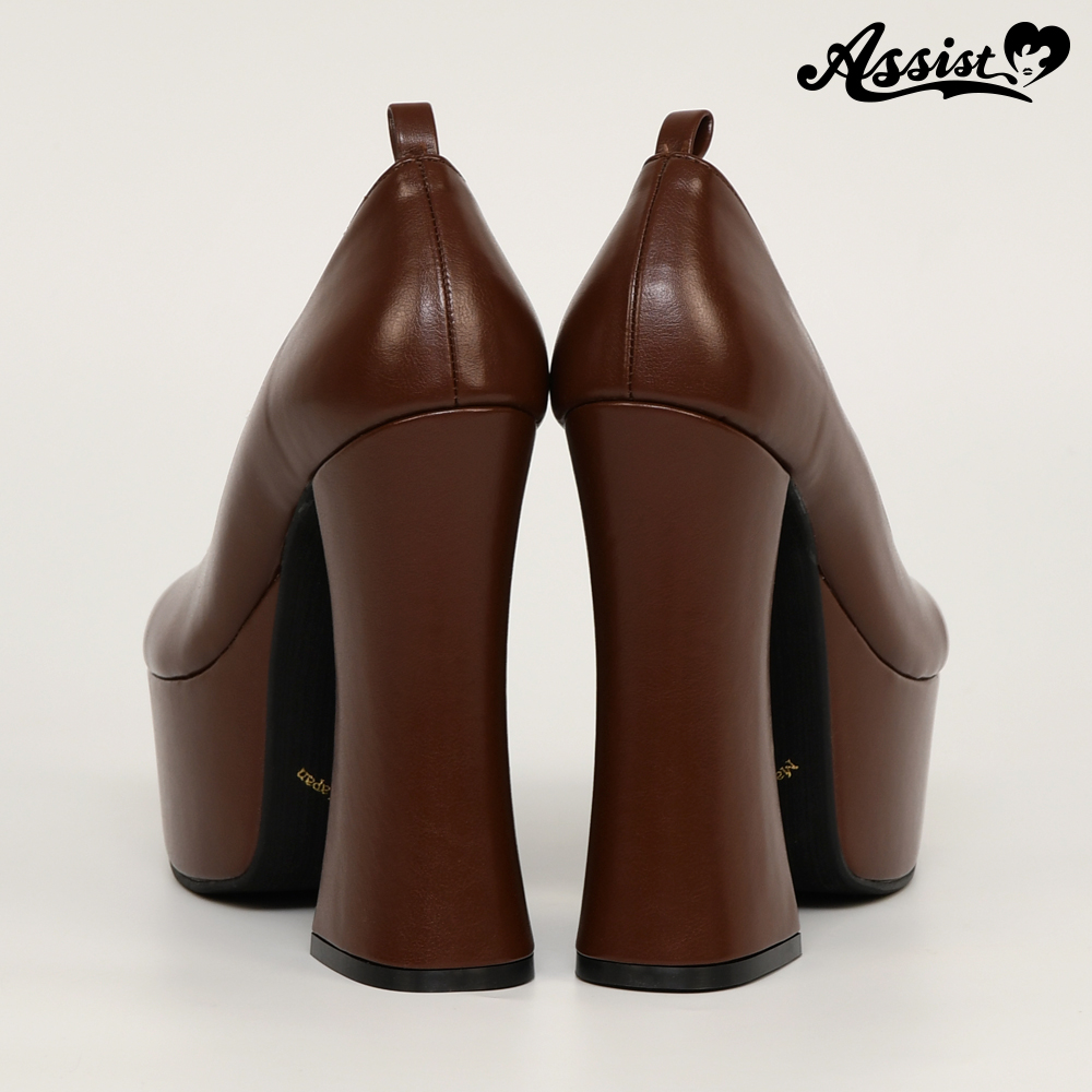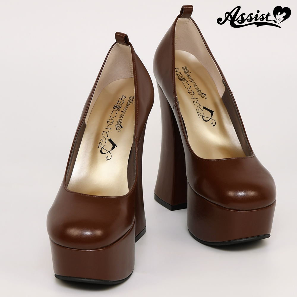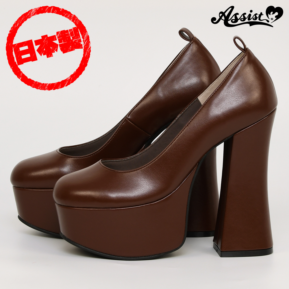 厚底パンプス 太ヒール14cm ブラウン L