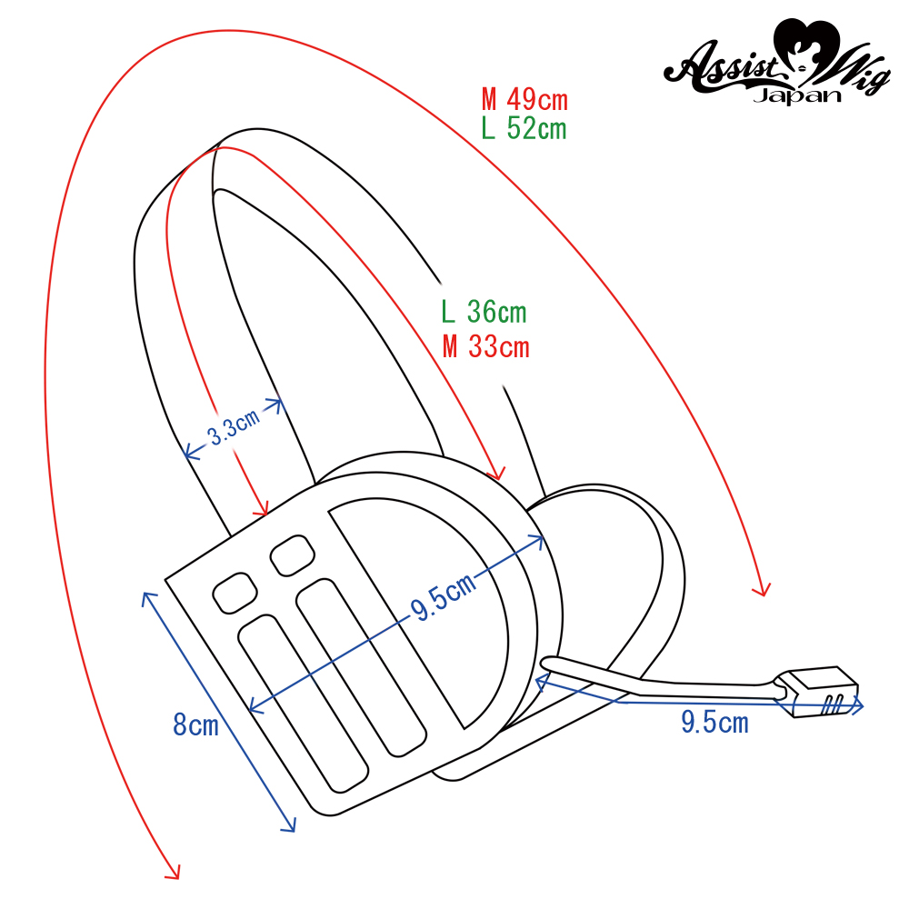 | 素材 | バンド:PVC(塩化ビニール)、マイクの棒:アルミ棒とポリオレフィン巻き、マイク:PMMA(アクリル)、耳部本体:PMMA(アクリル)、耳部厚み:3Mハイグロスダイノックフィルム貼り、耳部内側:フェルト貼り |