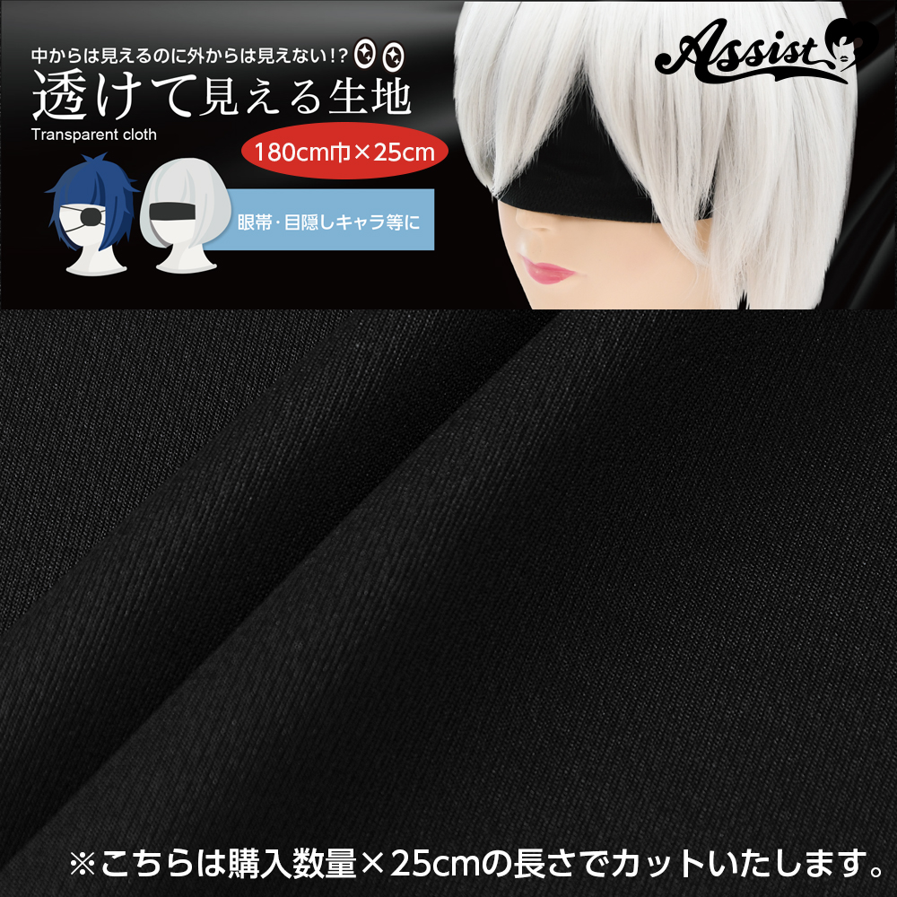 透けて見える生地 ブラック 180cm巾×25cm
