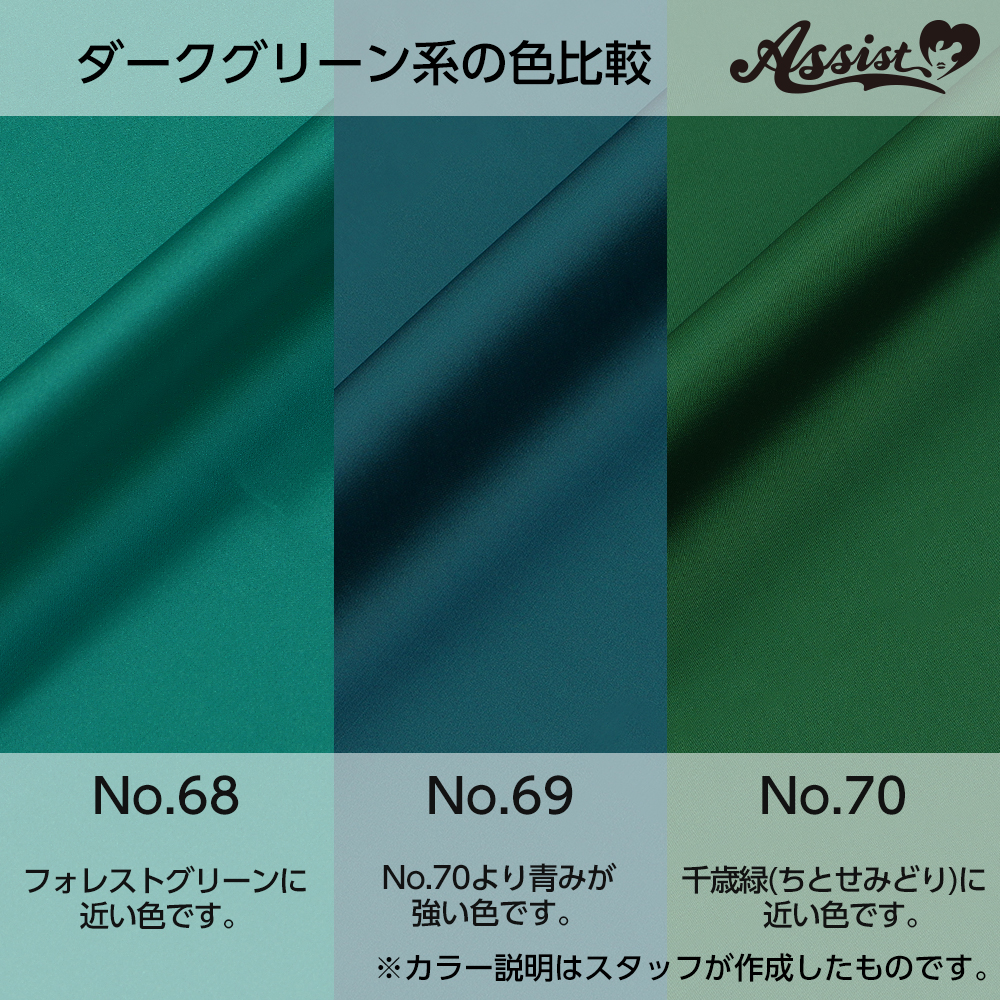 アシストサテン生地 125cm巾×50cm グリーン系 No.70