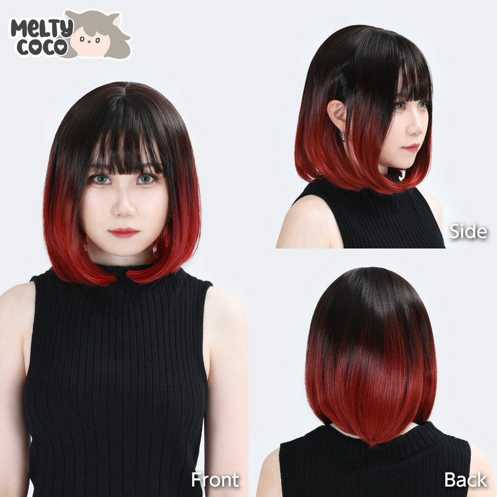 グラデーションニュアンスカールボブ メルティブラックレッド