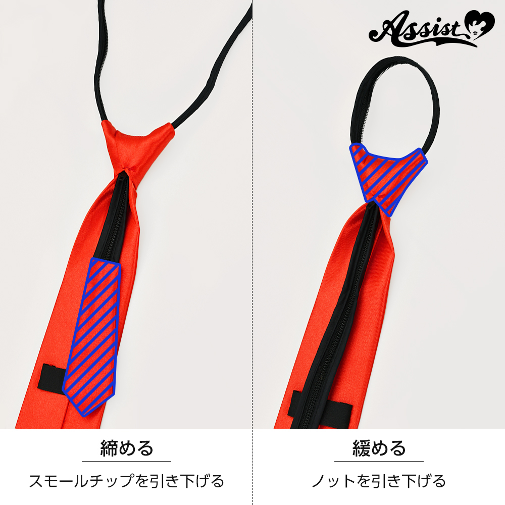 チャックの開閉で長さ調節が可能なループ式ネクタイです。