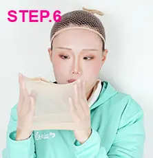 ウィッグネットやウィッグホルダーを着用した状態から始めます。 -