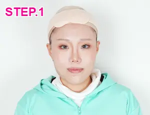 次に水泳帽タイプを重ねて使用します。髪のこぼれ防止や、リフトアップテープ使用時の痛み軽減に役立ちます。 -